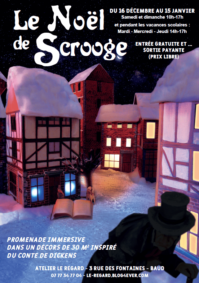 Sur 30 m2 vous êtes immergés dans l’ambiance de Dickens par l’évocation du conte « A Christmas Carol », ou le Chant de Noël. Vous retrouverez les trois esprits de Noël qui rendent visite au vieux M. Srooge et lui permettent de modifier le cours de son existence pour le rendre meilleur.