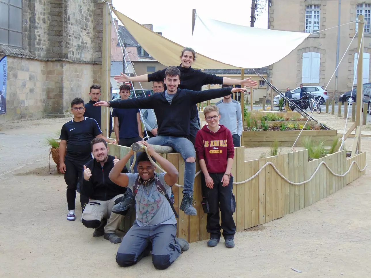 Les services techniques nous ont particulièrement bien épaulé tout le long de la réalisation, par la présence de Mme Anne Le Fouillé, les personnels des espaces verts et du service menuiserie. Tous les matériaux, et végétaux ont été fournis par la ville. Le lycée a donc apporté l’outillage et la main d’œuvre. La semaine s’est organisée dans une très bonne ambiance et le jardin a pu être terminé dans les temps. Alan « Di Caprio » et Ludivine « Winslet » ont même pu rejouer la scène culte du film Titanic sur la proue du Jardin.