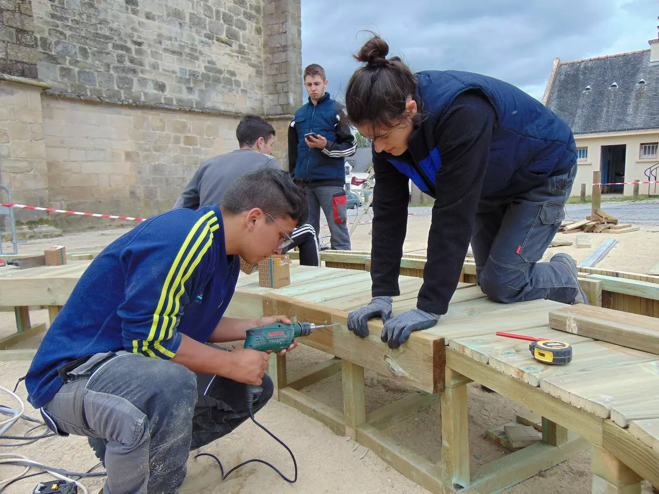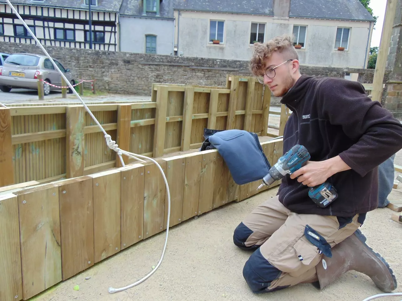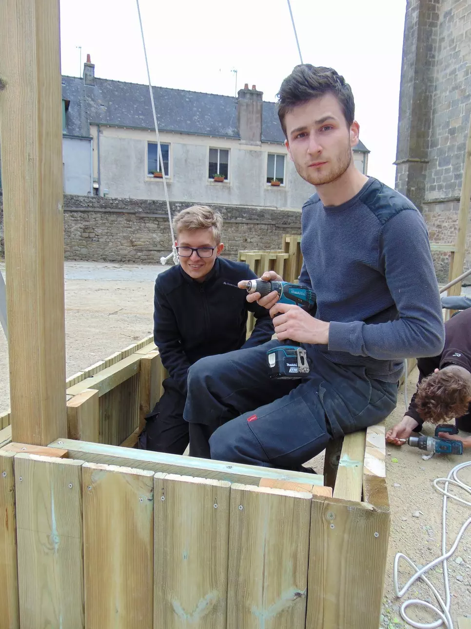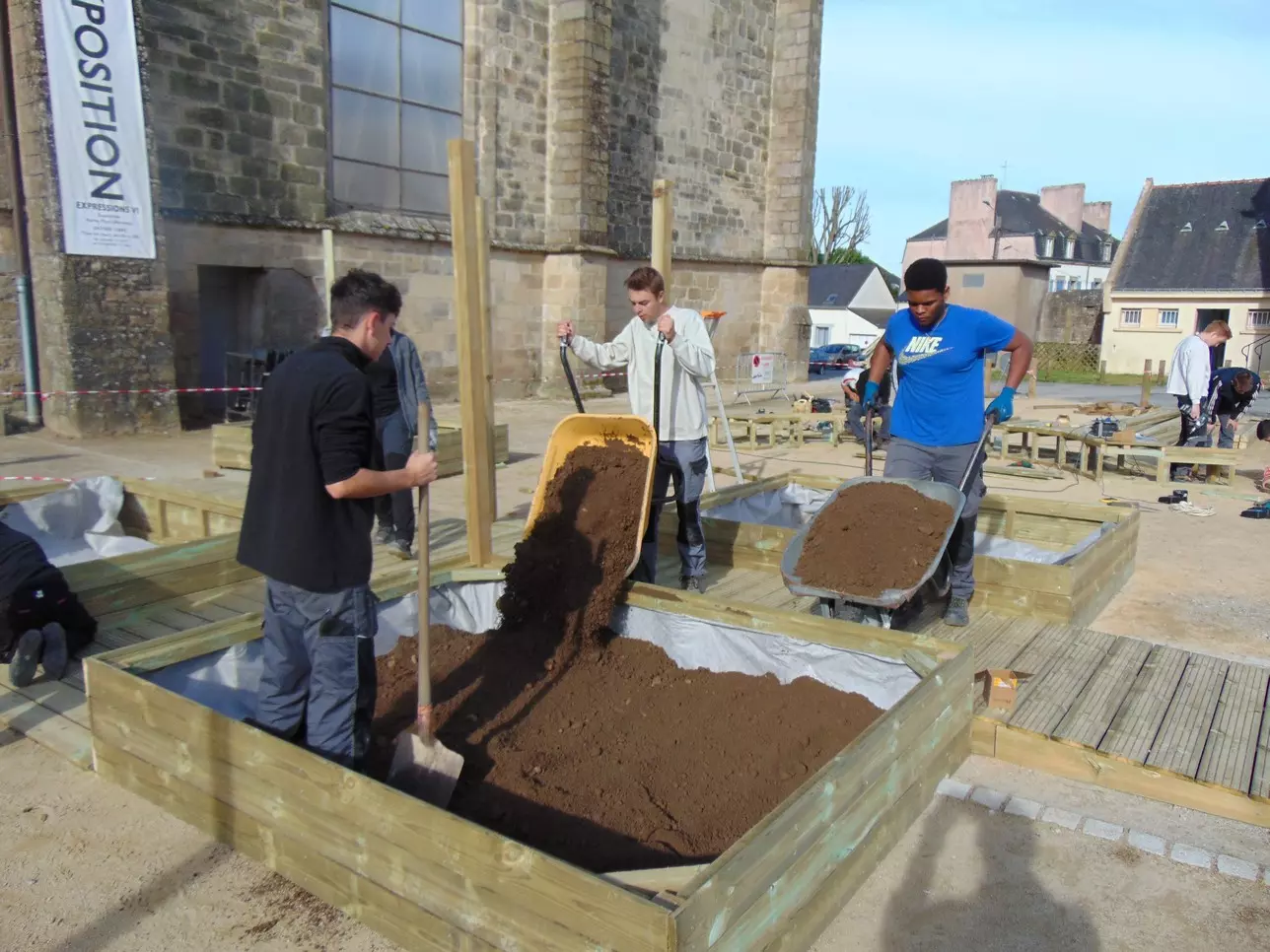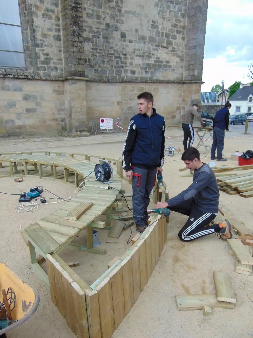 Les services techniques nous ont particulièrement bien épaulé tout le long de la réalisation, par la présence de Mme Anne Le Fouillé, les personnels des espaces verts et du service menuiserie. Tous les matériaux, et végétaux ont été fournis par la ville. Le lycée a donc apporté l’outillage et la main d’œuvre. La semaine s’est organisée dans une très bonne ambiance et le jardin a pu être terminé dans les temps. Alan « Di Caprio » et Ludivine « Winslet » ont même pu rejouer la scène culte du film Titanic sur la proue du Jardin.