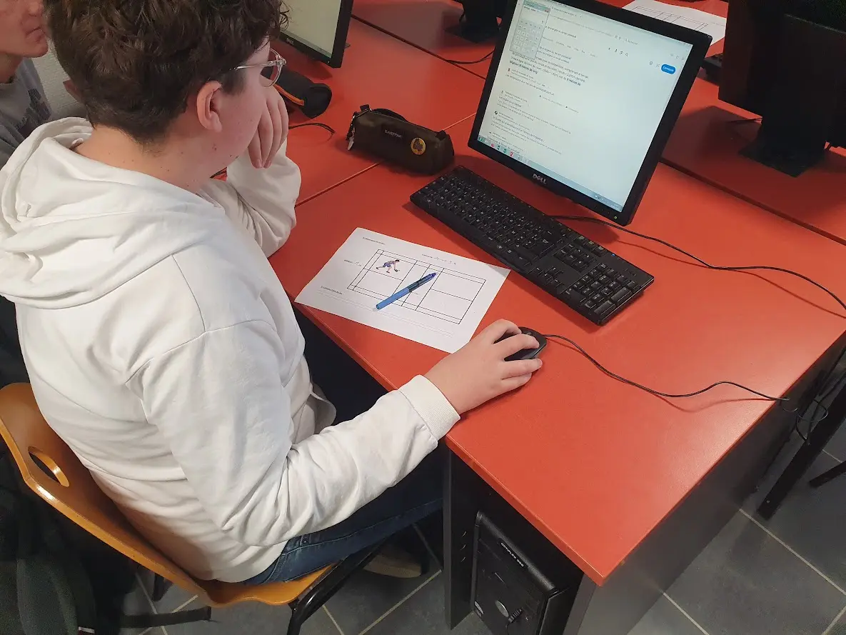 La séance a débuté en salle informatique, où les élèves ont mené différentes recherches autour de cette discipline venue des États-Unis. Traduction du nom anglais, découverte de l’histoire de ce sport, mais aussi quelques calculs autour des dimensions du terrain : l’occasion de mobiliser plusieurs compétences tout en préparant la séance pratique.