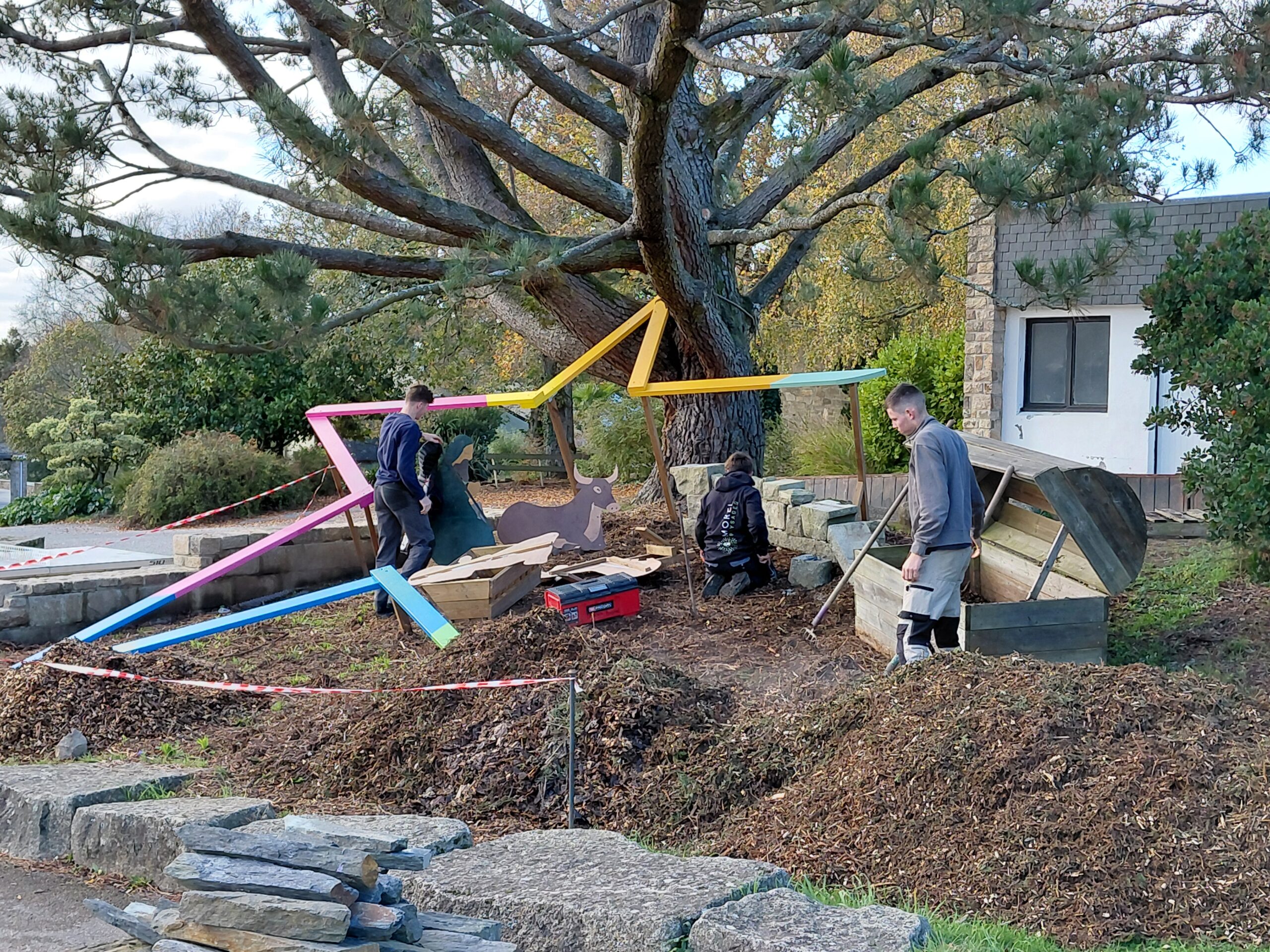 La réalisation de la crèche a mobilisé une énergie collective remarquable de la part du groupe classe des apprentis en BP Aménagements Paysagers.