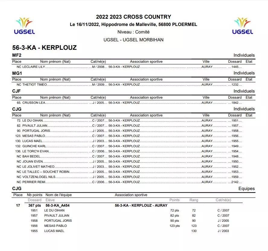 Une fois, n’est pas coutume ! Nous n’aurons pas d’élève cette année au championnat de Bretagne de cross.