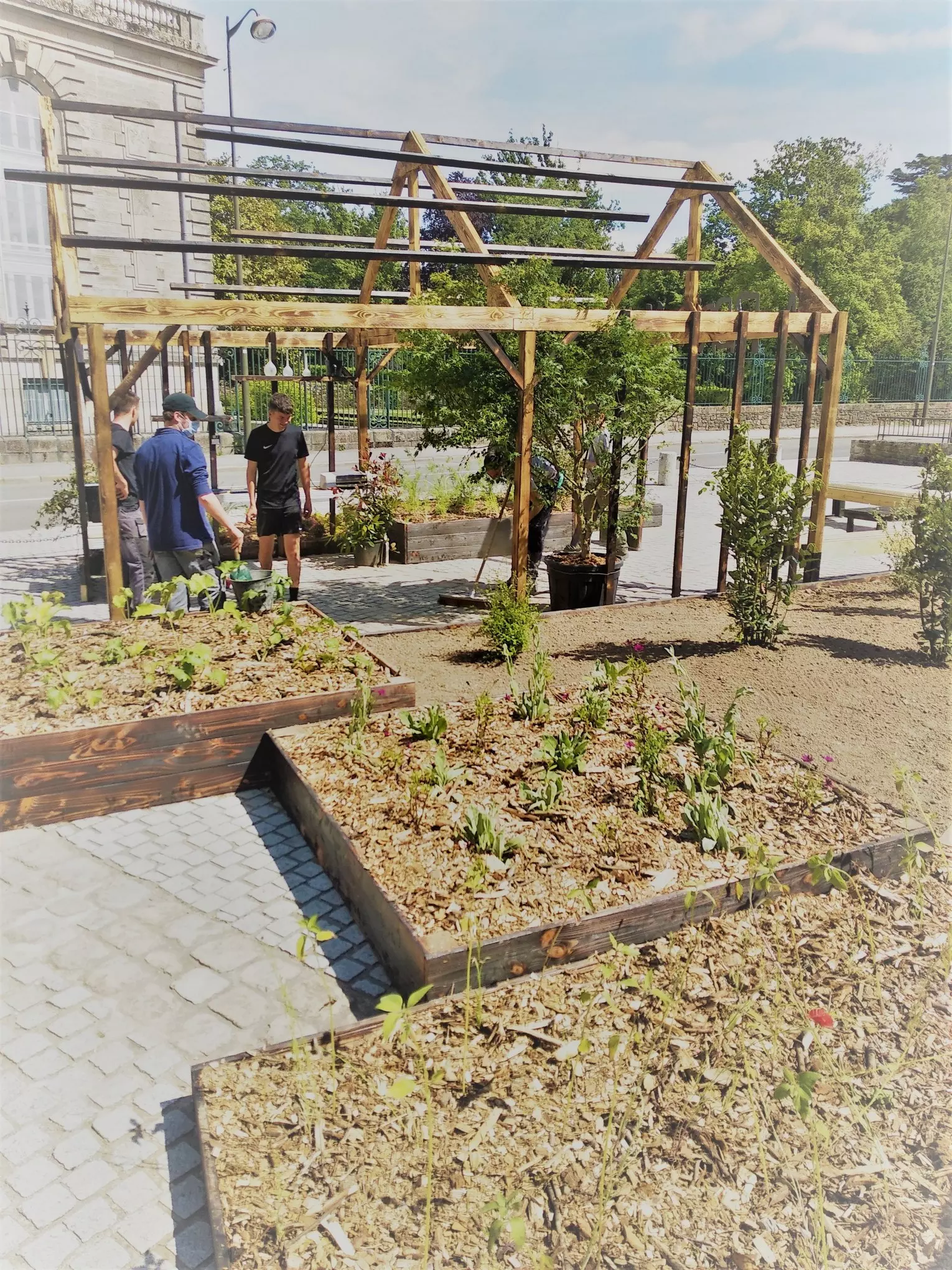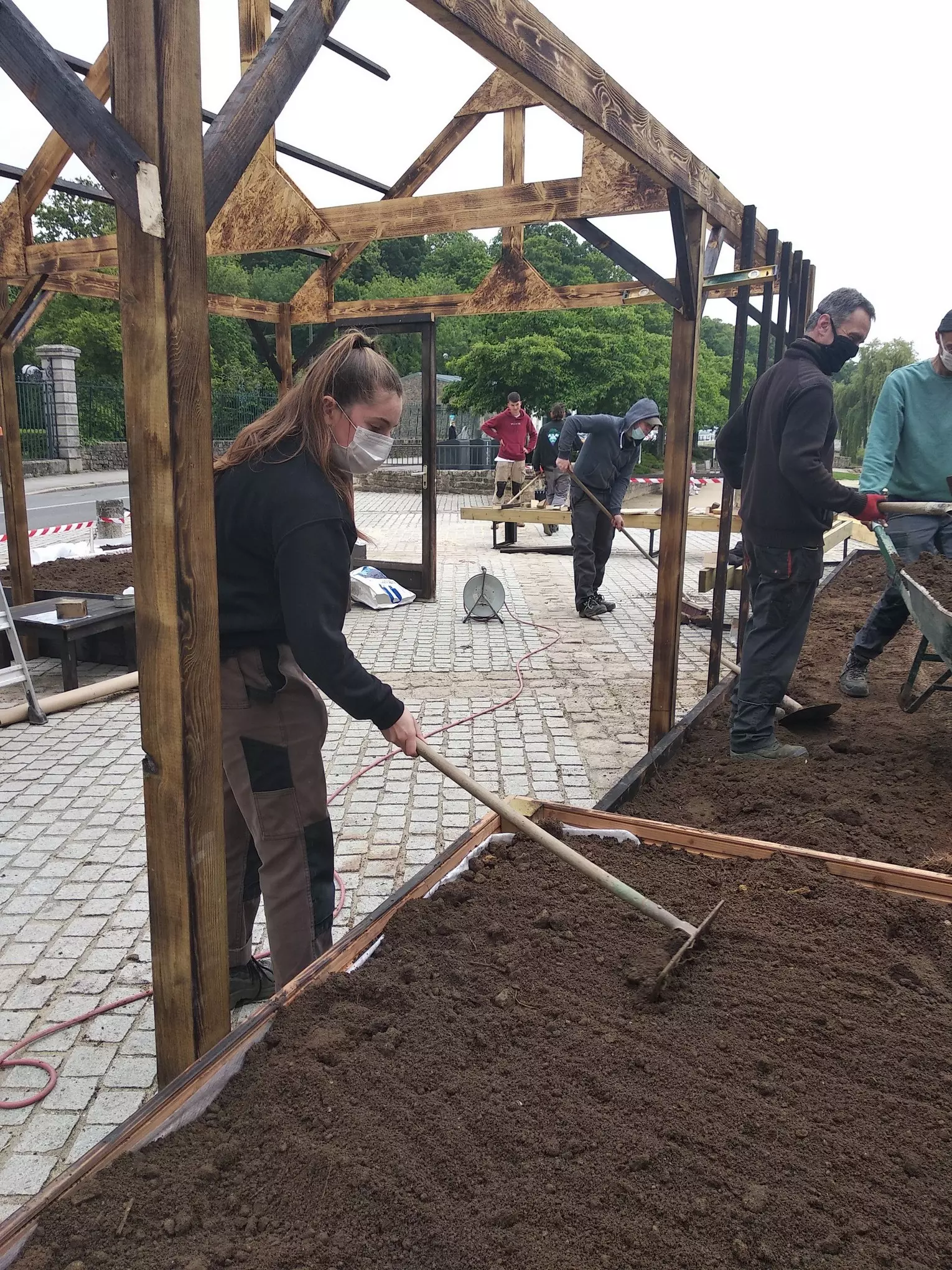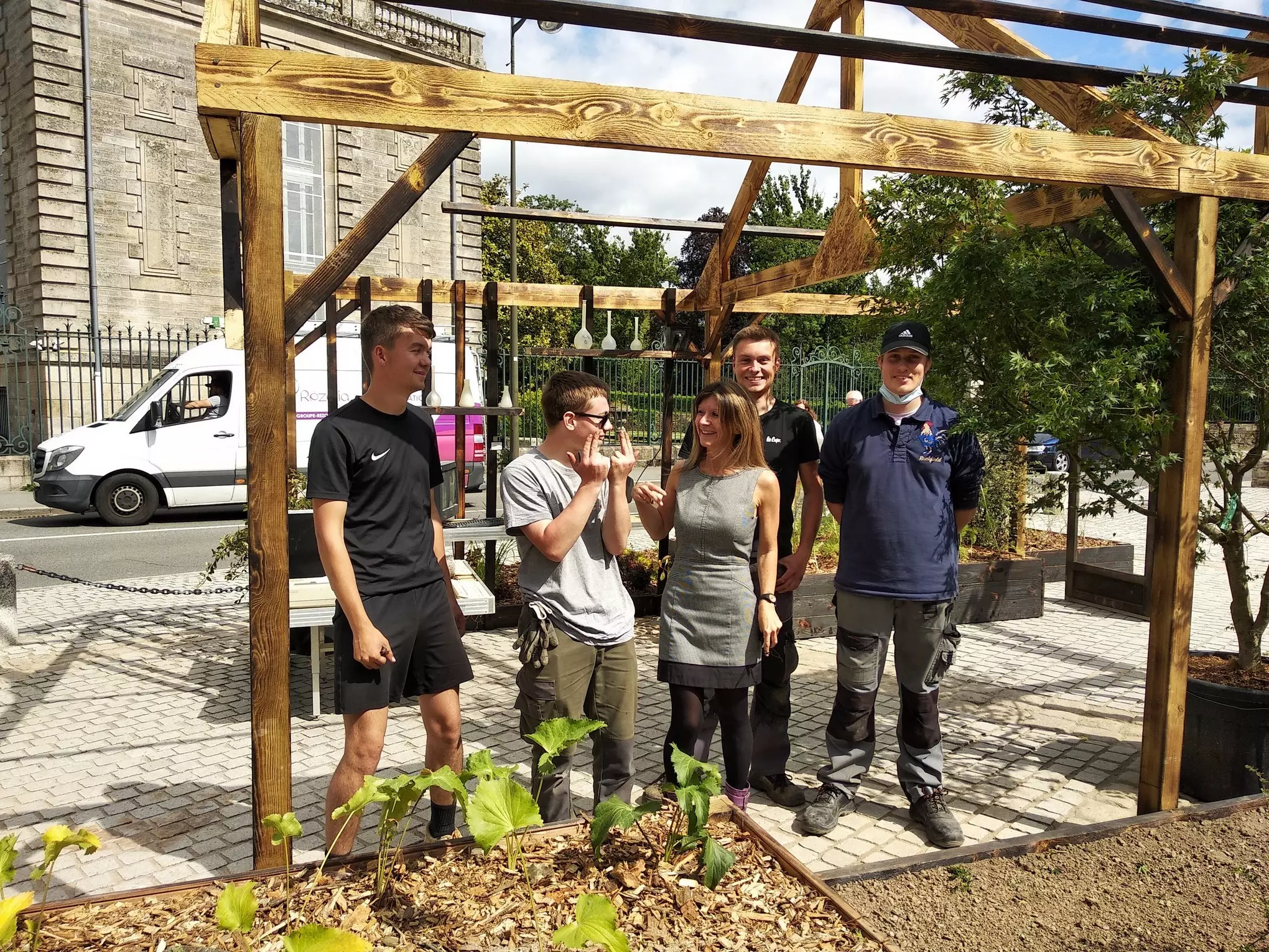 Kerplouz prend de la hauteur grâce à ses concepteurs et réalisateurs : les BTS Aménagements Paysagers deuxième année et l’équipe enseignante (Ronan, Sébastien, Éric et Marie-Line).