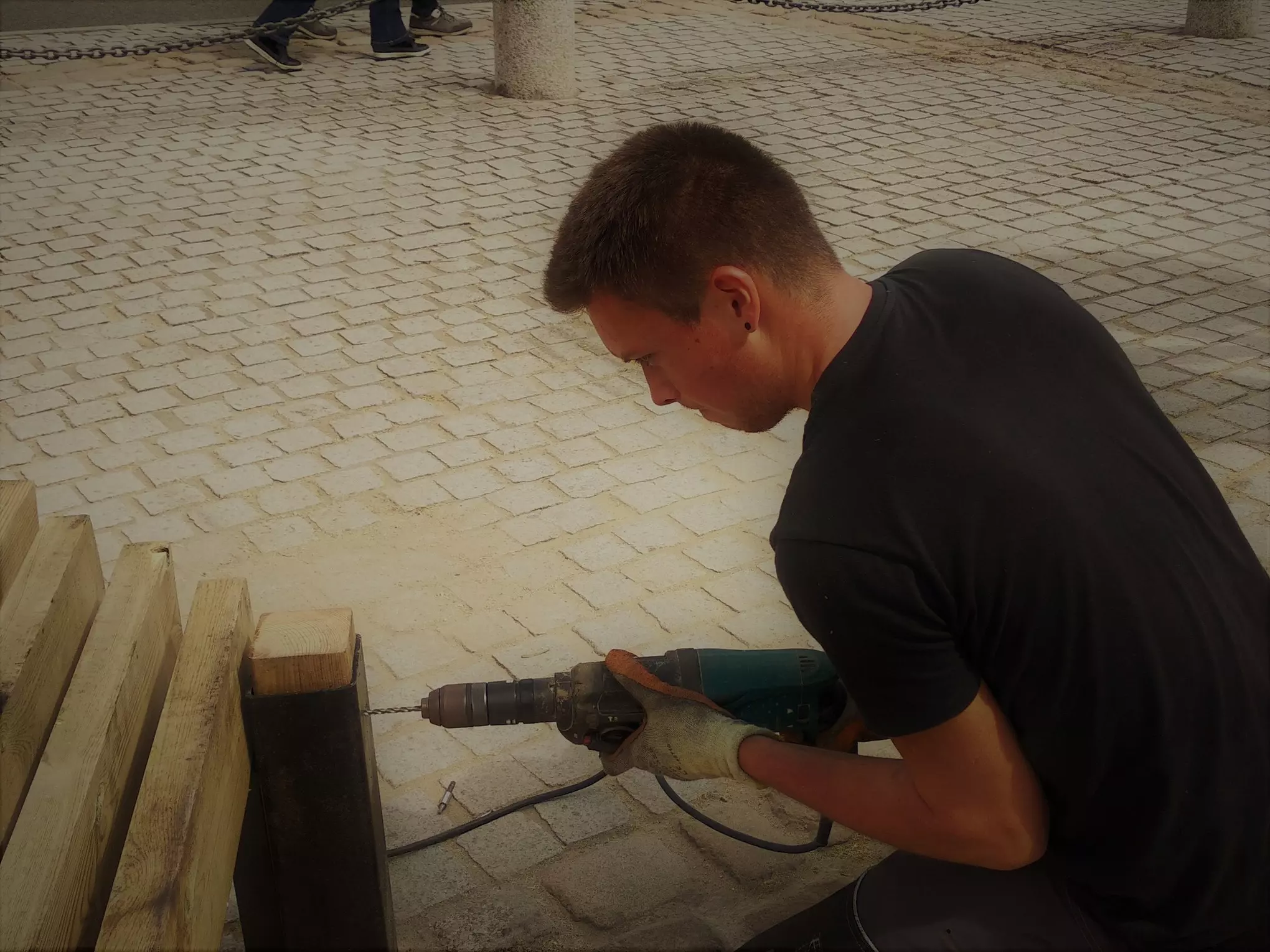 Des lignes noires suggérées par les jeux d’ombre quand apparait enfin le soleil ou plus réelles et constantes sur la matière brûlée au chalumeau. Ce noir souligne chaque élément et le met en valeur, comme un trait de crayon, d’eye liner.