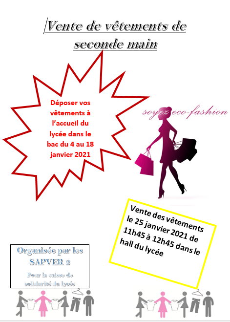 Des élèves en classe de SAPVER 2 ont eu l’initiative d’organiser une collecte et une vente de vêtements de seconde main. Plusieurs ventes ont eu lieu sur les mois de janvier et février dans le hall du lycée.